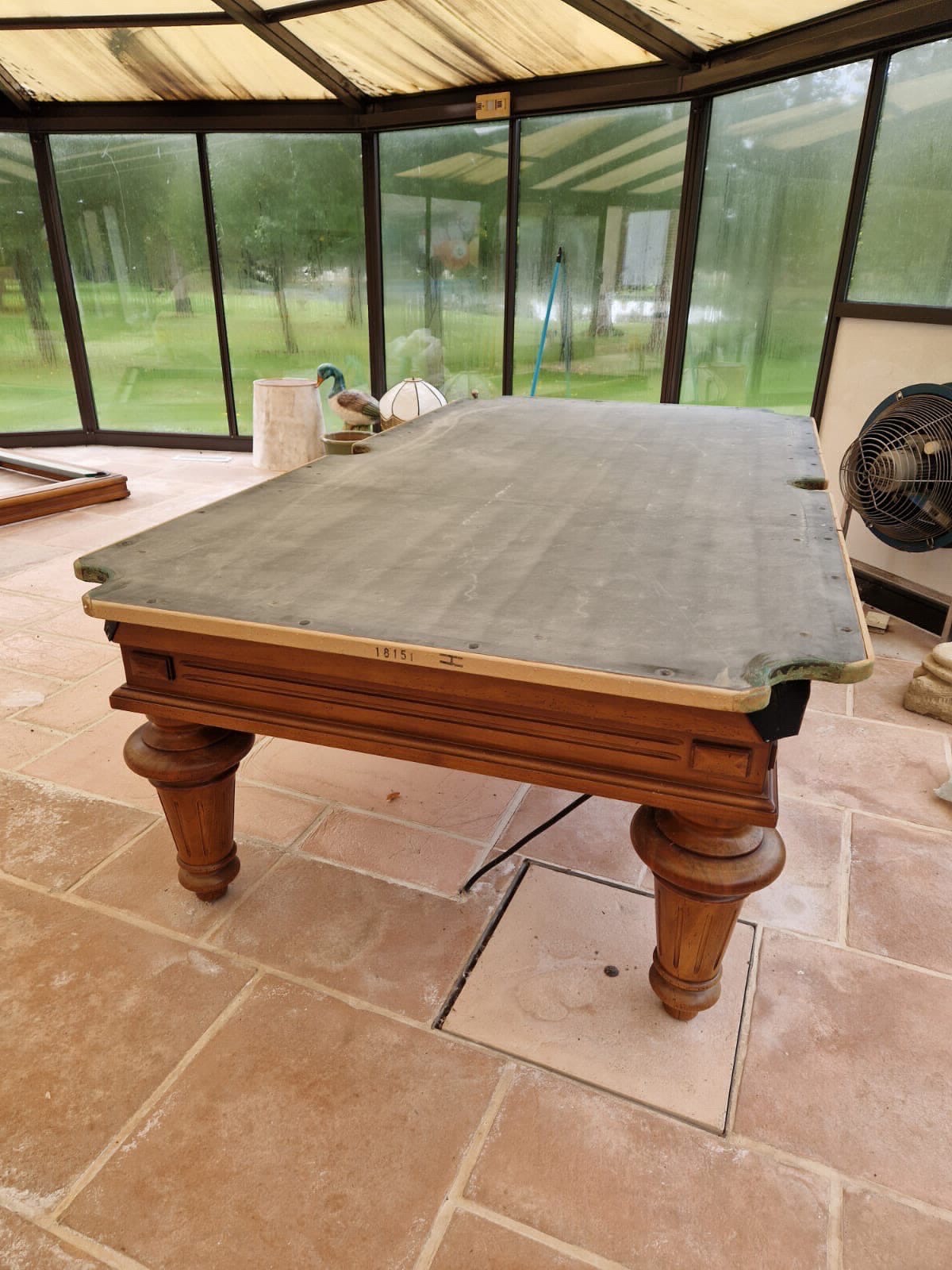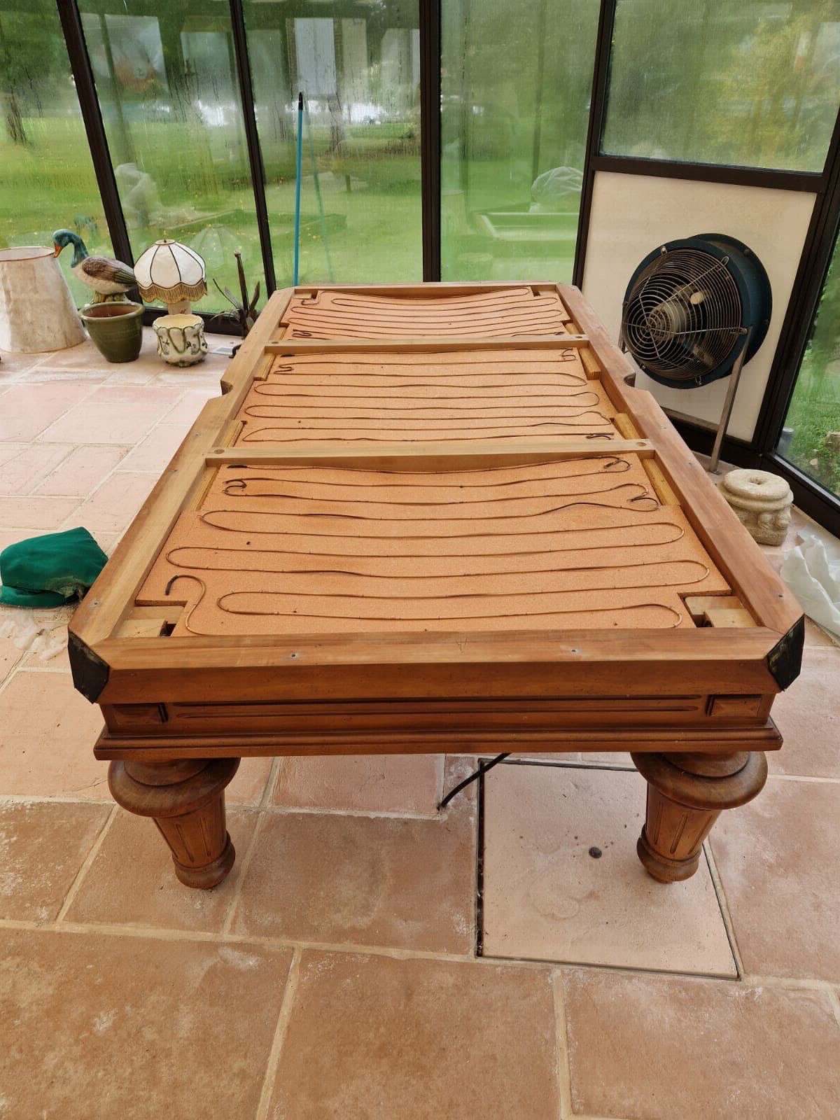 Déménagement d’un billard Francais chauffant, en trois ardoises, et réfection du tapis ainsi que de ses bandes