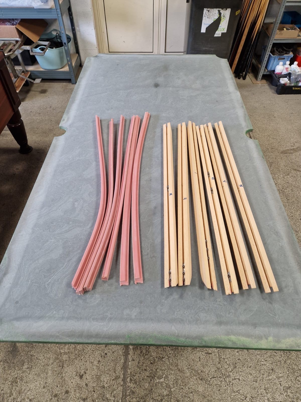 Réfection d’un tapis et installations de bande neuve sur un billard à Saint-André de l’Eure, travaux effectué en atelier par nos soins.