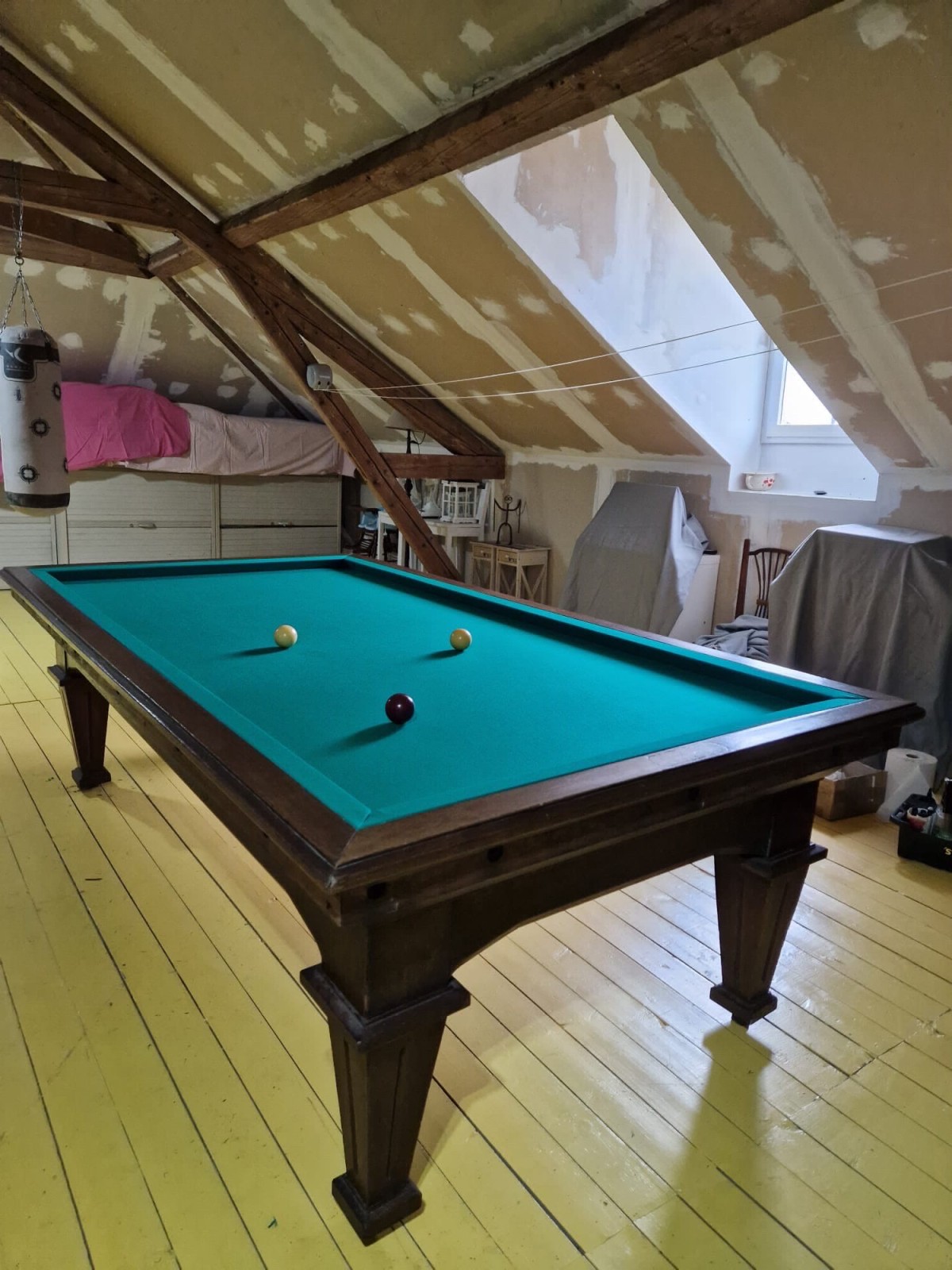 Remise en état complet, nettoyage, réfection de tapis et déménagement d’un Billard français en trois ardoise du côté de Vimoutiers 61 dans l’Orne.