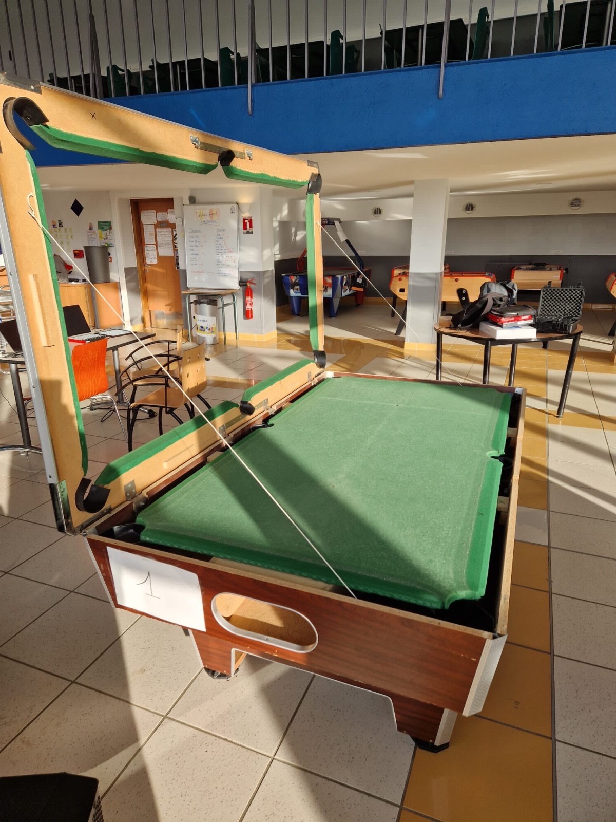 Remise en état et réfection de tapis sur 4 billards pool pour un lycée du côté d’ Evreux 27 dans l’Eure.